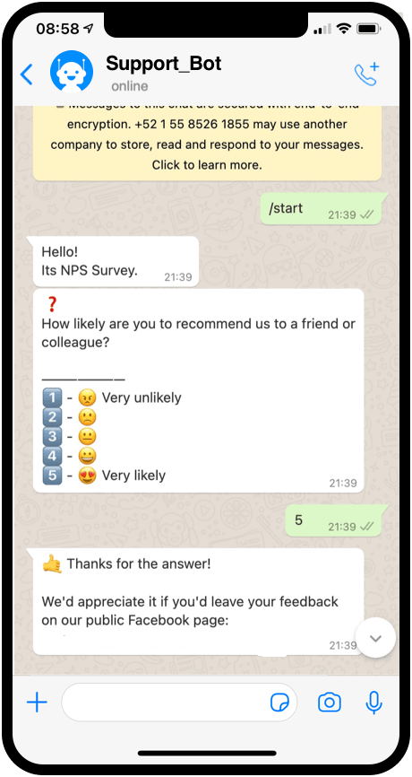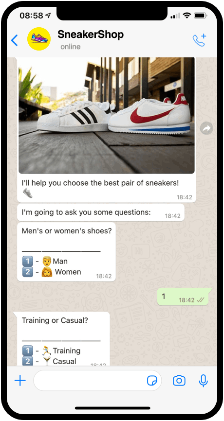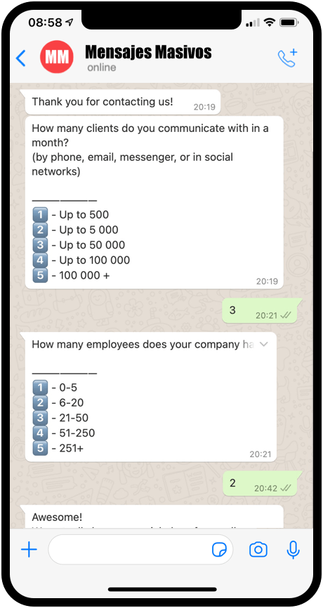 El chat-bot responderá automáticamente a los chats de WhatsApp entrantes en función de las palabras clave que mejor coincidan contenidas en el mensaje.