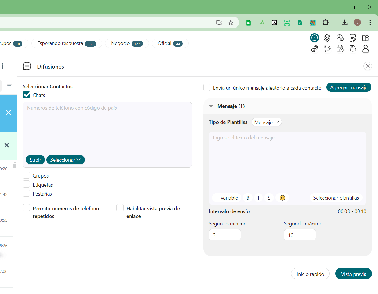Envía mensajes de difusión personalizados usando Excel, imágenes con subtítulos, respuesta automática, descarga de contactos, privacidad, campañas programadas y más...