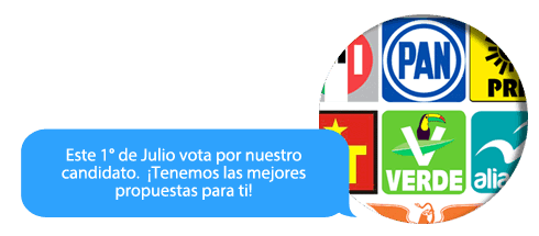 Lleva tus propuestas de campaña directo al celular de tus votantes, convoca a mítines, informa de reuniones y refuerza tu presencia e imagen política. Pregunta a nuestros asesores sobre el envío a nuestra base de datos con cobertura nacional.