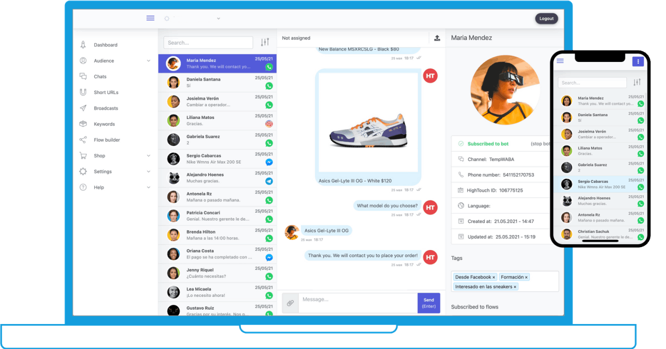 Conecta varios números de WhatsApp y páginas de Facebook. Configura reglas de enrutamiento. Responde automáticamente con un bot asignando el diálogo a un operador humano en casos complejos.