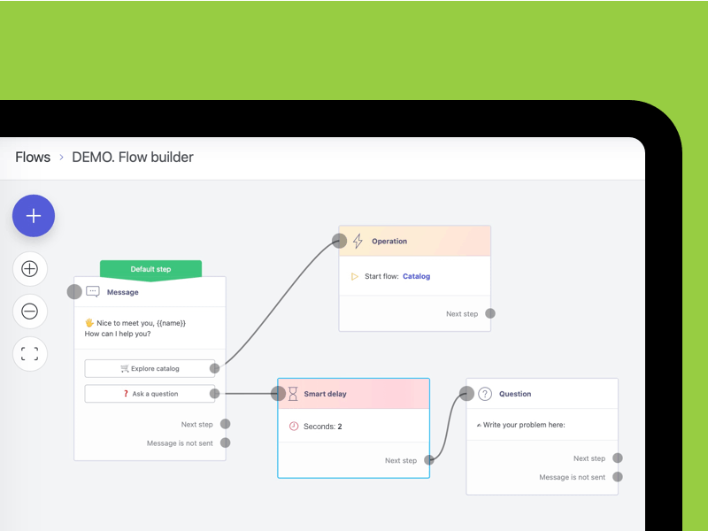 Empieza con una plantilla centrada en tu negocio. Construye tu propio bot en minutos con nuestra sencilla interfaz de arrastrar y soltar
